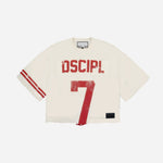 Introducing the DSCIPL Tee — the knit jersey reimagined. Its a unique piece for those who stand firm in their role for His eternal team. This jersey-style cropped tee is more than just clothing; it's a declaration of your dedication and identity in The Kingdom.