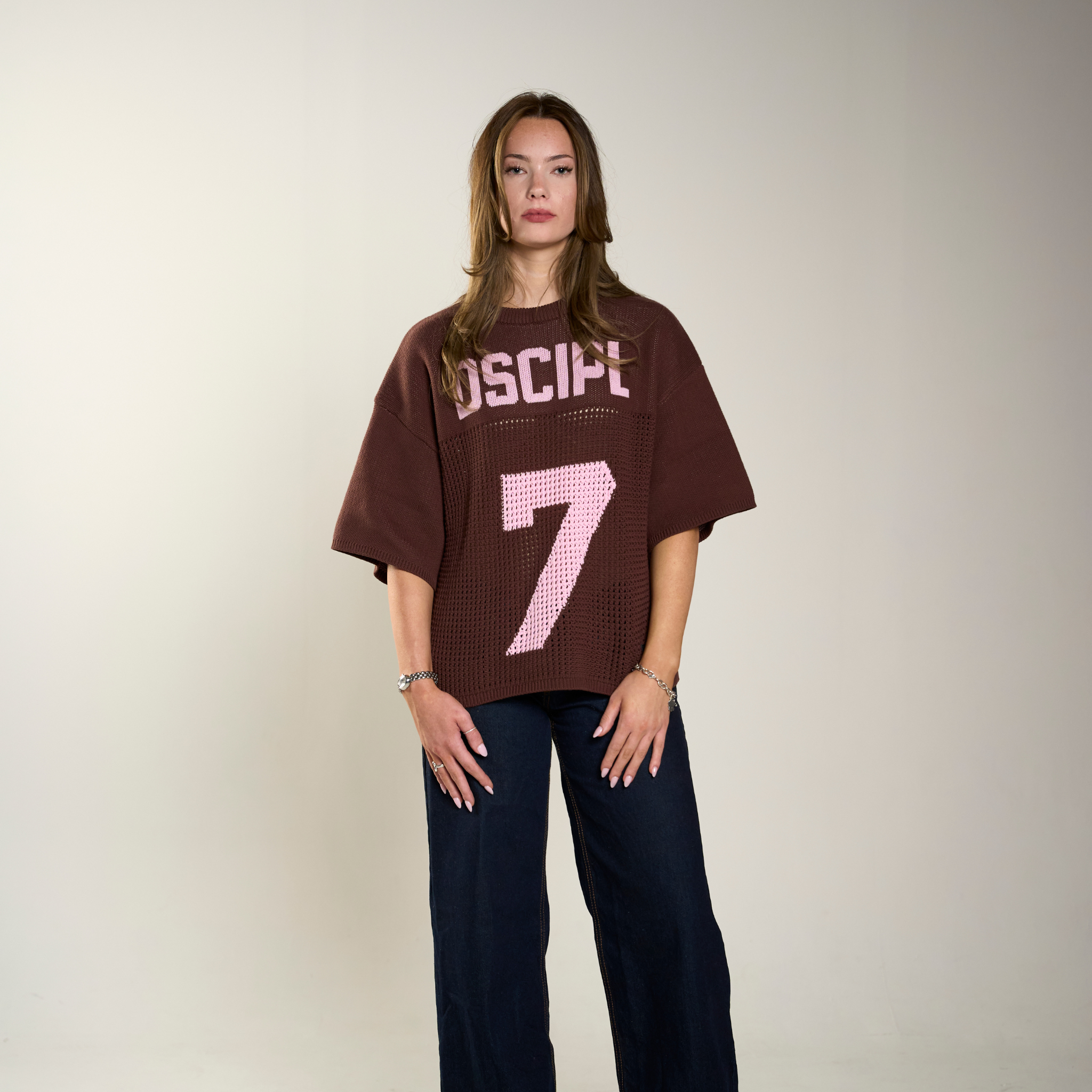 Introducing the DSCIPL Jersey — a bold, unique piece for those who stand firm in their role for His eternal team. This jersey-style oversized crochet top is more than just clothing; it's a declaration of your dedication and identity in The Kingdom.